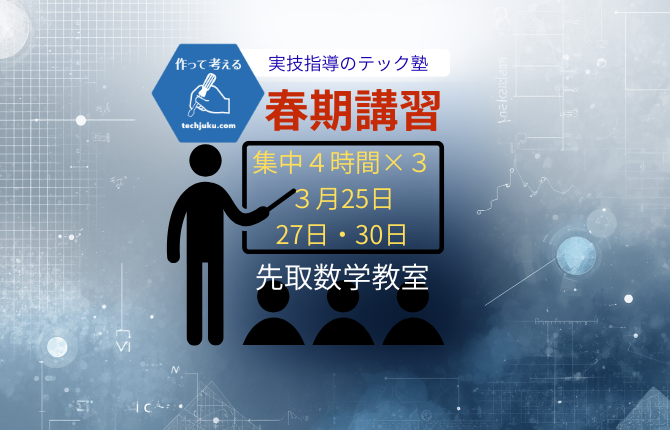 なお,新中学3年生の春期講習の受け入れは行っていませんが,テックコースへの入塾相談は受け付けています。