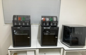今月の教材は「空中テーブル」です。いわゆるテンセグリティの一般的なものです。テックコースとキッズコースの共通の教材になっています。支柱はTinkercadで3Dデザインできるので、キッズコースの児童でも作成可能です。算数の知識がデザインに必要なので、「角度と少数」は補足してから進めている。「作って考える」ことが大切で、目的がなく知識だけを教え込むことはしません。楽しく学んでこそだと思います。1階の教室で3Dデザインして、2階の教室で一人一台の環境で3Dプリントしています。製作記念として支柱部分に名前を入れました。なお、0.5mmの釣り糸と電気用の圧着端子でテーブル(板)を吊っています。これは4本の長さをピッタリにして圧着する作業です。本当に細かな作業ですが、これが本当に指先を鍛えられます。